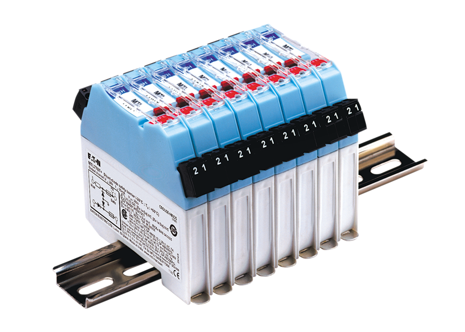 MTL7700 barriers clamp simply and securely onto standard T-section DIN rail, simultaneously making a reliable IS earth connection.